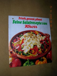 | 1580 | | knorr | feine salatrezepte von knorr | | c. h. knorr a.g. nahrungsmittelfabriken, wels | 1985 | * | 14,8 x 16,4 | 14 | | 3 | bunter druck - geheftet | | | |