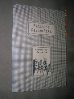 | 1585 | 4. | eirene's rezeptheft nr. 5 | kochen mit getreide | irene krafka | eigenverlag, schwarzenbach | 1993 | | 14,5 x 21 | 40 | | 2 | beiges heft - geheftet | | | |