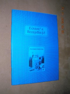 | 1586 | 4. | eirene's rezeptheft nr. 4 | konservierung | irene krafka | eigenverlag, schwarzenbach | 1993 | | 14,5 x 21 | 40 | | 2 | blaues heft - geheftet | | | |