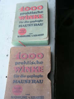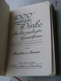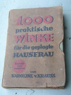 | 1686 | | haushalt | 1000 praktische winke für die geplagte hausfrau | karoline v. krauss | kommissionsverlag e. vetter, hohenems, vorarlberg | 1927 | | 11 x 16,5 | 320 | | 5 | im schutzkarton | | | |