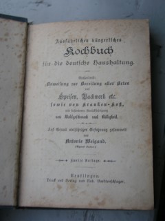 | 1685 | 2. | deutsches | ausfürliches bürgerliches kochbuch für die deutsch | antonie weigand (agnes lucas) | rob. Bardtenschlager, reutlingen | 1900 | * | 12,5 x 18,5 | 462 | 4120 | 4 | gold druck | | | |