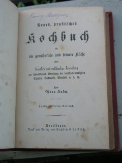 | 1688 | 2. Stereotyp | deutsches | neues, praktisches kochbuch für die gewöhnliche un | anna halm | enßin und laiblin, reutlingen | 1918 | * | 13 x 18,7 | 320 | | 4 | bunter druck auf braunem karton | | | |