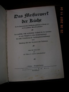 | 1692 | 2. | schweizer | das meisterwerk der küche | | sanitasverlag a.g., bern | 1940 | * | 18 x 25 | 606 | | 5 | goldprägedruck auf blauem leinen | | | |