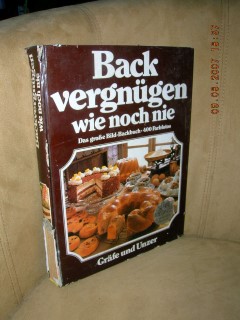 | 1699 | 7. | backen | backvergnügen wie noch nie | christian täubner und annette wolter | gräfe und unzer | 1981 | | 21,5 x 28,5 | 318 | | 6 | wasserschaden - seiten kleben zusammen | | | |