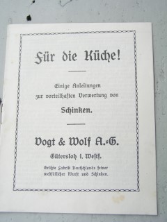 | 1774 | | schinken | für die küche! Einige anleitungen zur vorteilhafte | | vogt & wolf a.g. gütersloh i. westf. | 1900 | * | 11 x 14 | 7 | | 4 | geheftet | | | |