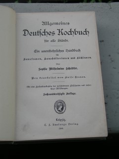 | 1772 | 36. | deutsches | allgemeines deutsches kochbuch für alle stände | sophie wilhelmine scheibler | t. f. amelangs verlag | 1900 | | 13 x 19,5 | 574 | 3365 | 4 | bunter druck | | | |