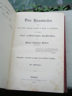 | 1773 | 14.wesentlich vermehrte und verbesserte | haushalt | das hauswesen | marie susanne kübler (frau scherr) | j. engelhorns nachf. | 1899 | | 14 x 20,7 | 704 | 2133 | 5 | goldprägedruck auf rot | | | |