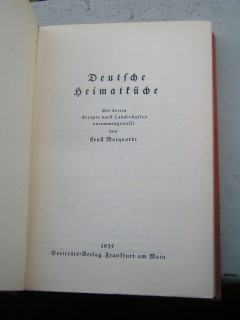 | 1784 | | deutsches | deutsche heimatküche | ernst marquardt | societäts verlag frankfurt am main | 1935 | | 12,5 x 18,5 | 222 | | 4 | goldprägedruck auf orangem leinen | | | |