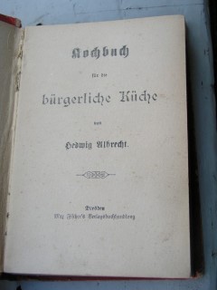 | 1808 | | deutsches | neues bürgerliches kochbuch | hedwig albrecht | verlag von max fischer | 1898 | | 12,5 x 18,7 | 191 | 53 | 5 | rot - golddruck | | | |