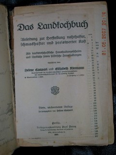 | 1810 | 4.neubearbeitete | deutsches | das landkochbuch anleitung zur herstellung nahrhaf | helene caspari und elisabeth kleemann | verlagsbuchhandlung paul parey, berlin | 1921 | | 15 x 22 | 311 | | 8 | stark bestoßen, rücken geklebt, seiten lose | | | |