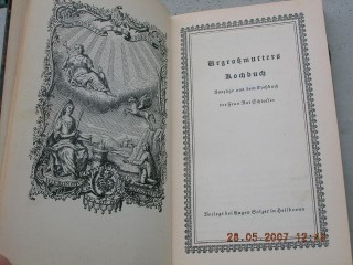 | 1811 | | deutsches | urgroßmutters kochbuch | frau rat schlosser | eugen salzer | 1936 | | 10,8 x 18 | 157 | | 4 | golddruck am rücken | | | |