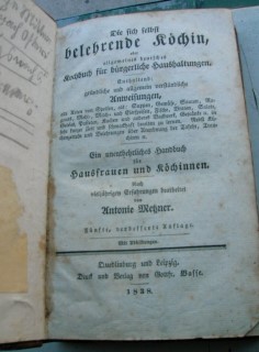 | 1815 | 5.verbesserte | deutsches | die sich selbst belehrende köchin oder allgemeines | antonie metzner | gottfr. Basse | 1838 | | 11,5 x 18,7 | 247 | 2541 | 5 | pappband mit goldprägung am rücken | | | |