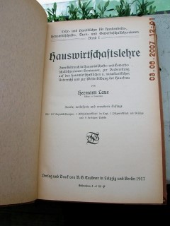 | 1878 | 2. | haushalt | hauswirtschaftslehre | hermann laue | b.g. teubner in leipzig und berlin | 1917 | | 14,5 x 22,3 | 354 | | 4 | schwarzer druck roter leinenrücken | | | |