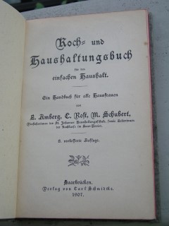 | 1880 | 8. | palmin | koch- und haushaltungsbuch für den einfachen hausha | amberg,rost, schubert | verlag von karl schmidtke, saarbrücken | 1907 | | 13 x 19 | 189 | 105 | 4 | rot schwarzer druck | | | |