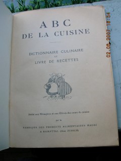 | 277 | | maggi | ABC de la cuisine | | fabrique des produits alimentaires maggi a kemptal - zürich | 1930 | * | 15,3 x 21,5 | 160 | | 5 | rot gelber druck auf grauem karton | | | |