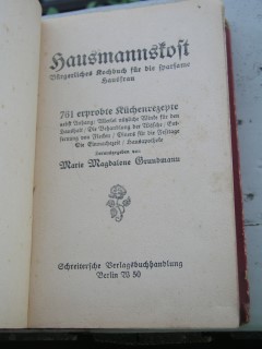 | 280 | | deutsches | hausmannskost -bürgerliches kochbuch für die spars | marie magdalene grundmann | schreitersche verlagsbuchhandlung, berlin | 1906 | * | 12,7 x 19 | 327 | 1343 | 5 | schwarzer prägedruck auf rotem karton | | | |