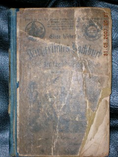 | 22 | 33. | deutsches | bürgerliches kochbuch | elise weber's | | 1887 | | 12,5 x 18 | 256 | 4089 | 9 | aussen stark beschädigt | | | |