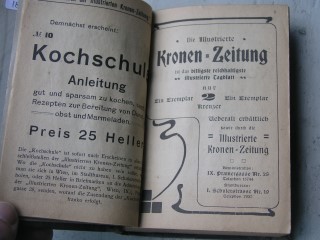 | 18 | | wiener | kochbuch der leserinnen der kronenzeitung | | bibliothek der illustrierten kronen zeitung | 1906 | * | 12 x 15 | 526 | | 4 | braun | | | |