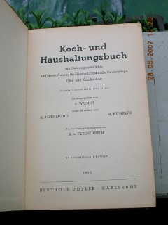 | 29 | 23. | deutsches | kochbuch für koch- und haushaltungsschulen | e. wundt | berthold dobler, karlsruhe | 1953 | | 14,5 x 21,5 | 770 | | 4 | grün mit golddruck auf leinen | | | |