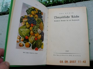 | 30 | | vegetarische | neuzeitliche küche | ida klein | vollmer & bentlin, hamburg | 1940 | | 14 x 20,5 | 146 | | 2 | grün mit golddruck auf leinen | | | |