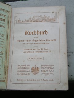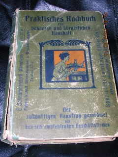 | 286 | | deutsches | kochbuch für den feineren und bürgerlichen haushal | gertrude wiemann - von den sich darin emphehlenen geschäftsfirmen | e. schreiber und t. braude, fürth | 1910 | | 14,5 x 20,5 | 248 | 4176 | 5 | schwarzer druck auf olivfarbenen karton, leinenrücken | | | |