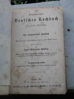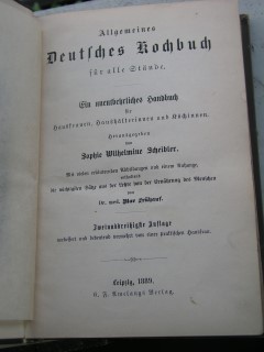 | 332 | 29. | deutsches | allgemeines deutsches kochbuch für alle stände | sophie wilhelmine scheibler | t. f. amelangs verlag | 1885 | | 13 x 19,5 | 537 | 3369 | 6 | goldprägedruck rücken lose | | | |