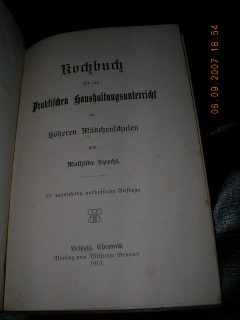 | 333 | 4. Vermehrte, verbesserte | deutsches | kochbuch für den praktischen haushaltungsunterrich | mathilde specht | verlag von wilhelm gronau, leipzig chemnitz | 1913 | | 15,3 x 22 | 152 | 3649 | 5 | schwarzer druck auf grünem karton | | | |