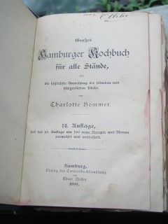| 334 | 14. | hamburg | großes hamburger kochbuch für alle stände | charlotte hommer | verlag der zentralbuchhandlung v. theodor nielsen, hamburg | 1899 | | 14 x 21 | 796 | 1685 | 6 | golddruck, rücken lose, seiten lose | | | |