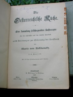 | 335 | 1. | wiener | die österreichische küche. Eine sammlung selbsterp | marie von rokitansky | a. edlinger's verlag | 1897 | | 16 x 23 | 577 | 3239 | 6 | halber rücken fehlt, prägedruck | | | |