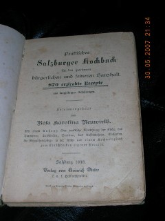 | 338 | 1. | salzburger | praktisches salzburger kochbuch für den sparsamen | rosa karolina neuwirth | verlag von heinrich dieter, k.u.k. hofbuchhändler | 1898 | | 13,5 x 20,3 | 194 | 2814 | 6 | schwarzer prägedruck | | | |