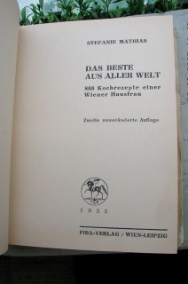 | 339 | 2. Unveränderte | deutsches | 888 kochrezepte - das beste aus aller welt | stefanie mathias | fiba verlag, wien leipzig | 1935 | | 15 x 19,2 | 435 | | 4 | brauner druck auf leinen mit buntem schutzumschlag | | | |