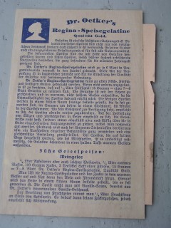 | 33 | | oetker | dr. Oetker's speisegelantine | | gundlach, bielefeld | 1920 | | 9,5 x 15 | 3 | | 4 | gefalzt | | | |