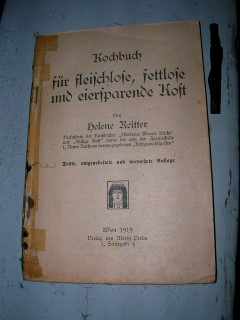 | 39 | | vegetarisch | kochbuch für fleischlose, fettlose u. eiersparende | helene reitter | verlag von moritz perles, wien | 1919 | | 13,5 x 20 | 176 | | 6 | cover fehlt | | | |