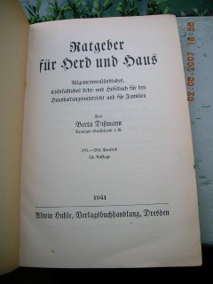 | 41 | 24. | haushalt | ratgeber für herd und haus | berta dißmann | alwin huhle, dresden | 1941 | | 15 x 22,3 | 280 | | 5 | grauer karton-grün,roter druck | | | |
