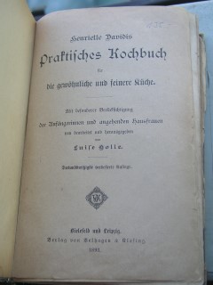 | 43 | 2. | davidis | das neue kochbuch für die deutsche küche | henriette davidis - ida schulze | velhagen & klasing, bielefeld | 1934 | | 15,5 x 22 | 351 | | 3 | weißes leinen - roter druck | | | |