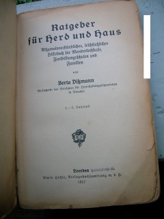 | 45 | 1. | haushalt | ratgeber für herd und haus | berta dissmann | alwin huhle, dresden | 1912 | | 14,3 x 21,3 | 242 | 769 | 7 | schwarzer druck auf braunem karton | | | |