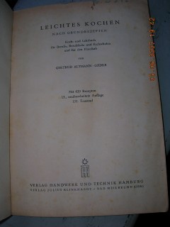 | 493 | 13. Neubearbeitete | deutsches | leichtes kochen nach grundrezepten | gertrud altmann gädke | verlag handwerk und technik | 1951 | | 14,5 x 20,4 | 38 | | 5 | bunter druck - paperback | | | |