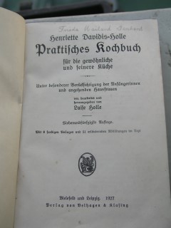 | 492 | 57. | davidis | praktisches kochbuch | henriette davidis - holle - luise holle | velhagen und klasing | 1914 | | 13,5 x 20 | 666 | 694 | 4 | grün-weißer prägedruck auf halbleinen | | | |