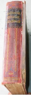 | 567 | 18. | wiener | wiener kochbuch | louise seleskowitz | wilhelm braumüller, wien leipzig | 1918 | | 16 x 23,5 | 544 | 3578 | 6 | jugendstil - bunter druck - rücken geklebt | | | |