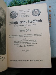 | 570 | 9/10. | deutsches | illustriertes kochbuch für die einfache und feine | mary hahn | verlagsbuchhandlung m. hahn, wernigerode i. harz | 1918 | | 14,5 x 21 | 661 | 1405 | 4 | bild mit schwarzem drck auf braunem karton | | | |