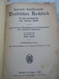| 569 | 53. | davidis | praktisches kochbuch | henriette davidis - holle - luise holle | velhagen und klasing | 1922 | | 13 x 19,5 | 666 | 694 | 5 | schwarzer druck auf leinen | | | |