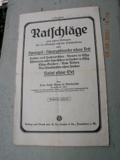 | 583 | 4. Flugblatt | spargel | ratschläge zum guten gelingen für den einkauf und | luise kautz | r. th. Hauser & co. Frankfurt | 1935 | * | 14,7 x 23 | 7 | | 5 | schwarzer druck auf papier - geheftet | | | |