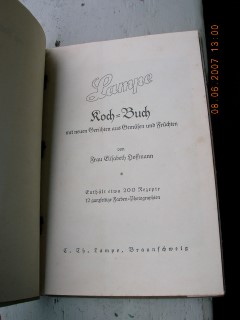 | 571 | | lampe | lampe kochbuch | elisabeth hoffmann | th. Lampe, braunschweig | 1940 | * | 15,3 x 23 | 84 | | 5 | bunter schutzumschlag | | | |