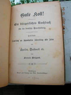 | 575 | | deutsches | gute kost - ein bürgerliches kochbuch | antonie weigand | rob. Bardtenschlager, reutlingen | 1914 | | 13,5 x 20 | 239 | 4121 | 5 | schwarzer druck - leinen rücken | | | |