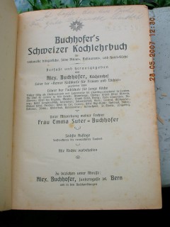 | 579 | 6. | schweizer | schweizer kochlehrbuch | a. buchhofer, emma suter buchhofer | alex. Buchhofer, bern | 1913 | * | 16 x 22,2 | 628 | 527 | 5 | golddruck auf orange | | | |