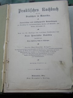 | 57 | | davidis | praktisches kochbuch für die deutschen in amerika | henriette davidis | g. brumder's verlag, milwaukee | 1897 | | 15 x 21 | 646 | 696 | 5 | prägedruck auf grünem leinen | | | |