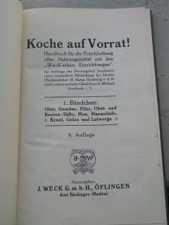 | 47 | 9. | weck | koche auf vorrat band 1 | hotop - auerbach | j. weck g.m.b.h. öflingen | 1911 | | 14,3 x 22 | 161 | 4099 | 2 | schwarzer druck auf grauem karton | | | |