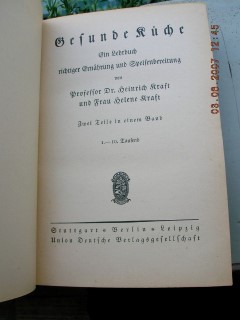 | 591 | 1. | deutsches | gesunde küche - ein lehrbuch richtiger ernährung u | prof.dr. heinrich kraft u. helene kraft | union deutsche verlagsgersellschaft, stuttgart | 1921 | | 13 x 19 | 352 | | 5 | roter druck auf halbleinen | | | |