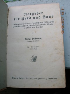 | 592 | 12. | haushalt | ratgeber für herd und haus | berta dißmann | alwin huhle verlagsbuchhandlung | 1926 | | 14,5 x 22 | 291 | | 5 | braun | | | |