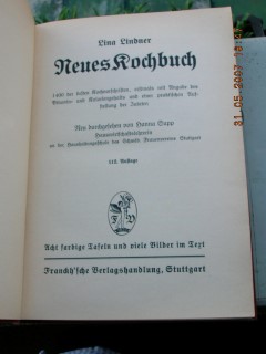 | 593 | 112. | deutsches | neues kochbuch | lina lindner | franckh'sche verlagsbuchhandlung, stuttgart | 1930 | * | 16 x 23,5 | 514 | | 4 | schwarzer prägedruck auf rotem leinen | | | |